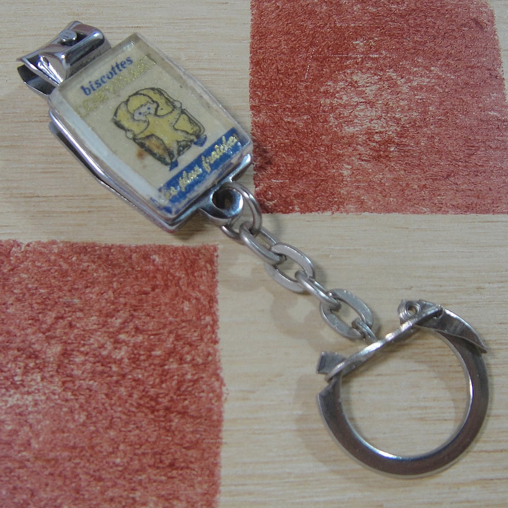 60年代頃に日本から海外に輸出されていたフランスのビスコッツ・コルヴィサート社でトースト型ラスクのキャラクター広告「最も新鮮な」のヴィンテージ爪切りキーホルダーです。携帯用の爪切りとしてもご使用になれますが、あくまでもキーホルダーとしてご理解ください。フランスからの逆輸入品となります。