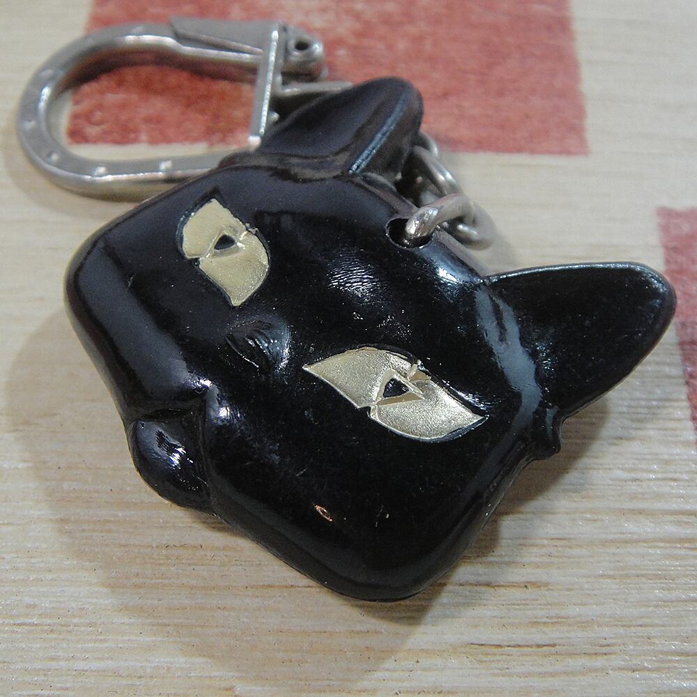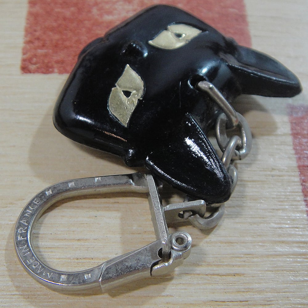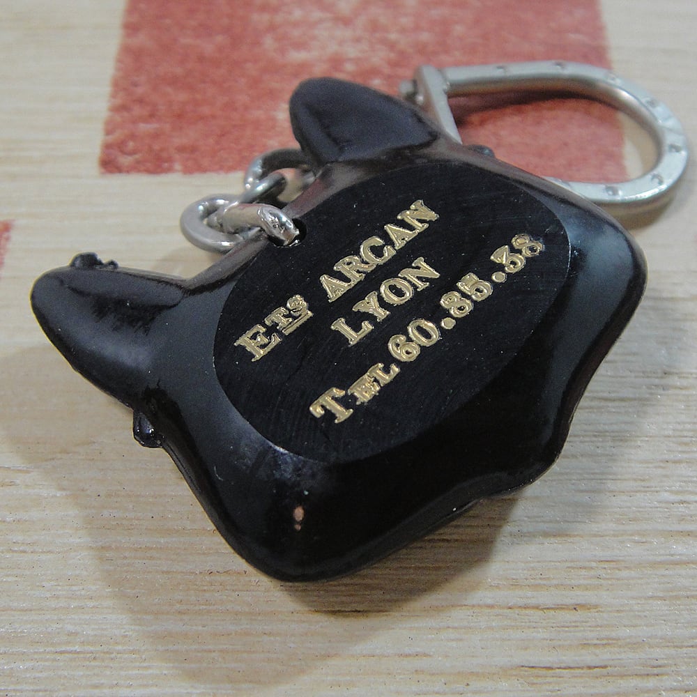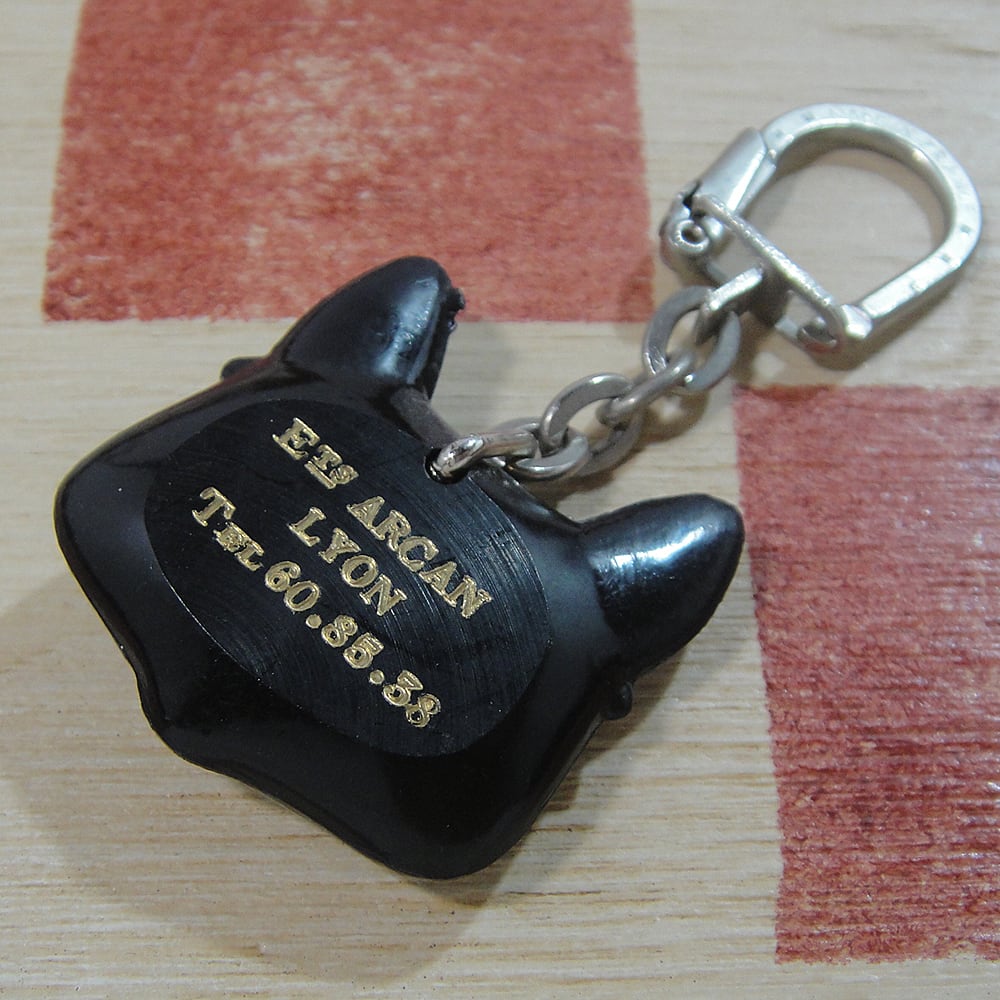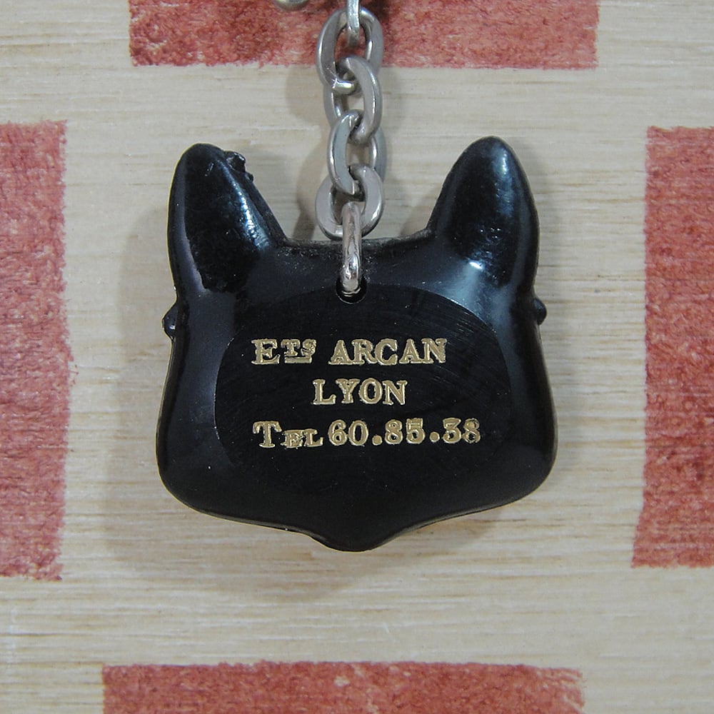 60年代頃のフランス自動車ヘッドライトメーカーのマーシャルで、黒猫キャラクターヴィンテージキーホルダーです。裏面はフランスの都市リオンのカーショップ広告になっています。金具にはMADE IN FRANCEの刻印があります。