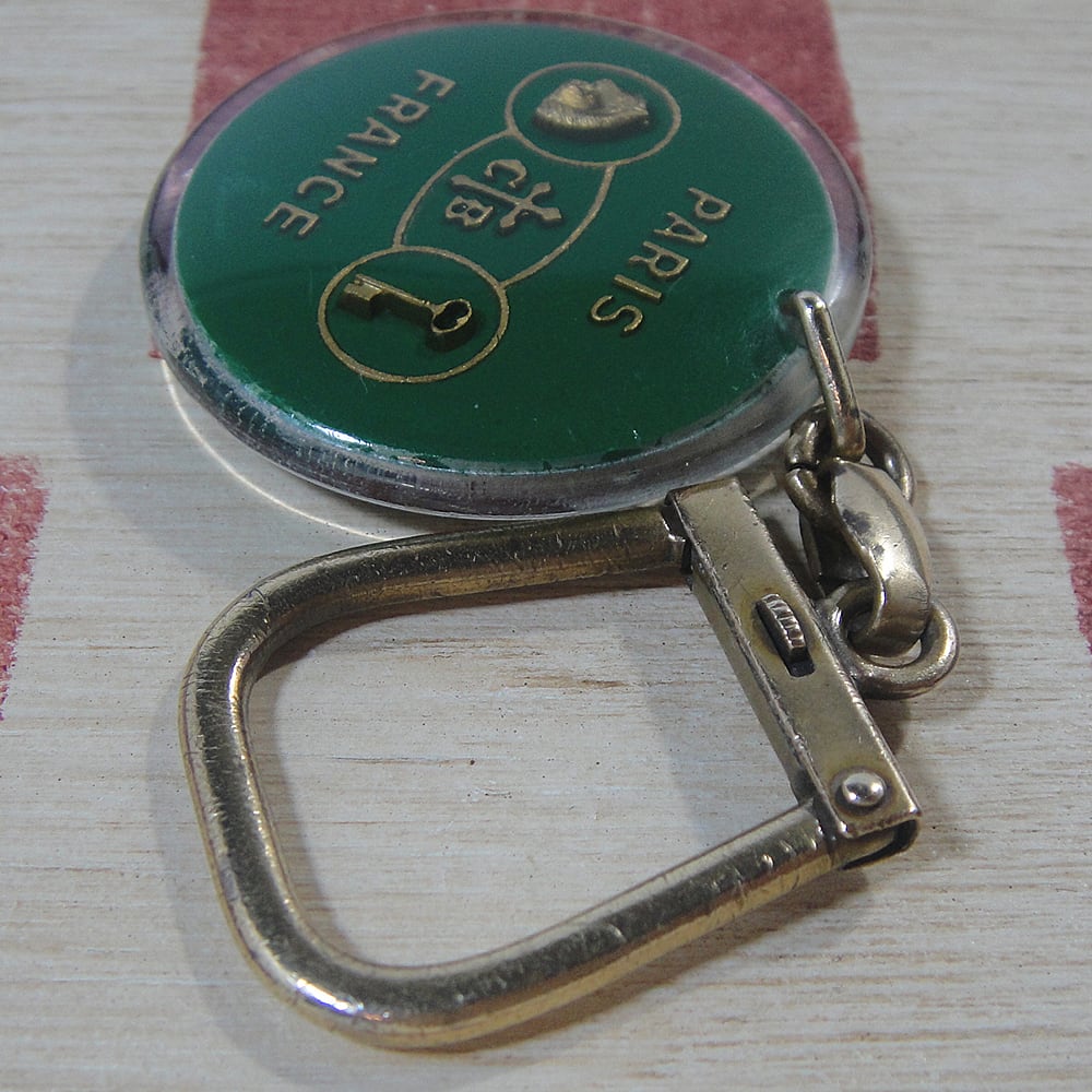 1961年にフランス老舗手芸用品メーカーのDMC社と合併したフランス紡績メーカーのティリーズ&カルティエ・ブレッソン社の企業広告ノベルティで、企業ロゴマークとDMC社の馬ロゴマークに裏面はアフリカ地図があしらわれたヴィンテージキーホルダーです。金具はブルボンキーホルダーと似てますが社名文字がありません。