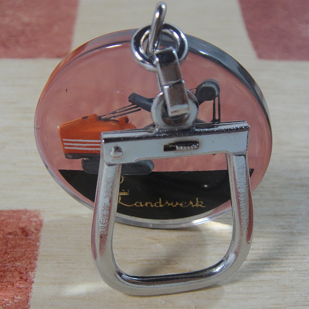 1872年に設立されたスウェーデンの重工業会社で、トラクター、オフロード車両、装甲車両などを製造していたランズヴェルク社のフランス向けクレーン広告ブルボンキーホルダーです。