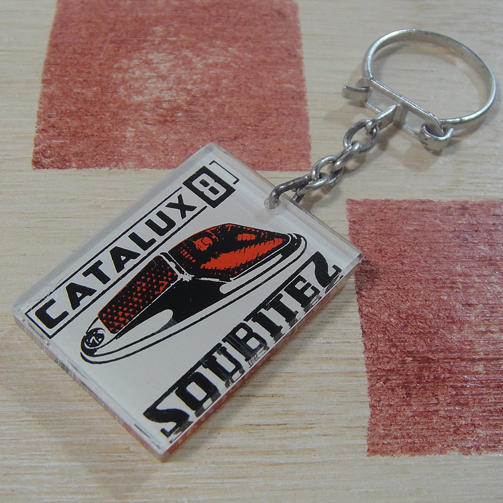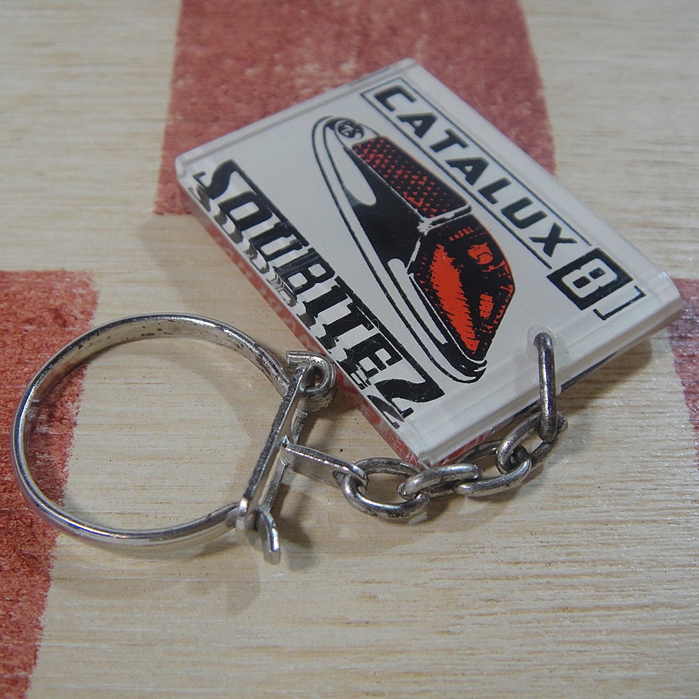フランス自動車ライトメーカーのセブ マーシャルで、黒猫キャラクターヴィンテージキーホルダーです。裏面はソービッツのテールランプでカタラックス8製品の宣伝になっています。両面フラットなタイプです。