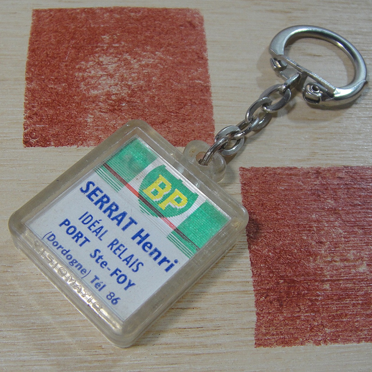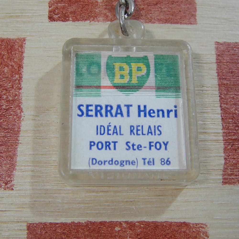 60年代頃のイギリス石油関連企業 BP(ブリティッシュ・ペトロリアム)キャラクターのエンジンオイル(Visco-Static)広告ノベルティでフランス向けレンチキュラータイプ(VISIOMATIC)の見る角度によって絵が変わる広告ヴィンテージキーホルダーです。