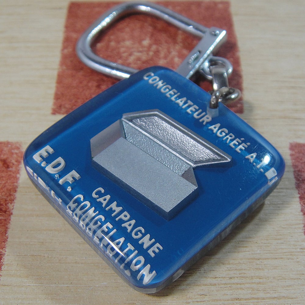 「E.D.F.冷凍キャンペーン」とは、EDF/エレクトリシテ・ド・フランス(フランス電力公社)がかつて実施した、エネルギー節約、特に冷蔵機器の消費への影響に焦点を当てた冷凍庫キャンペーン用のブルボンキーホルダーです。