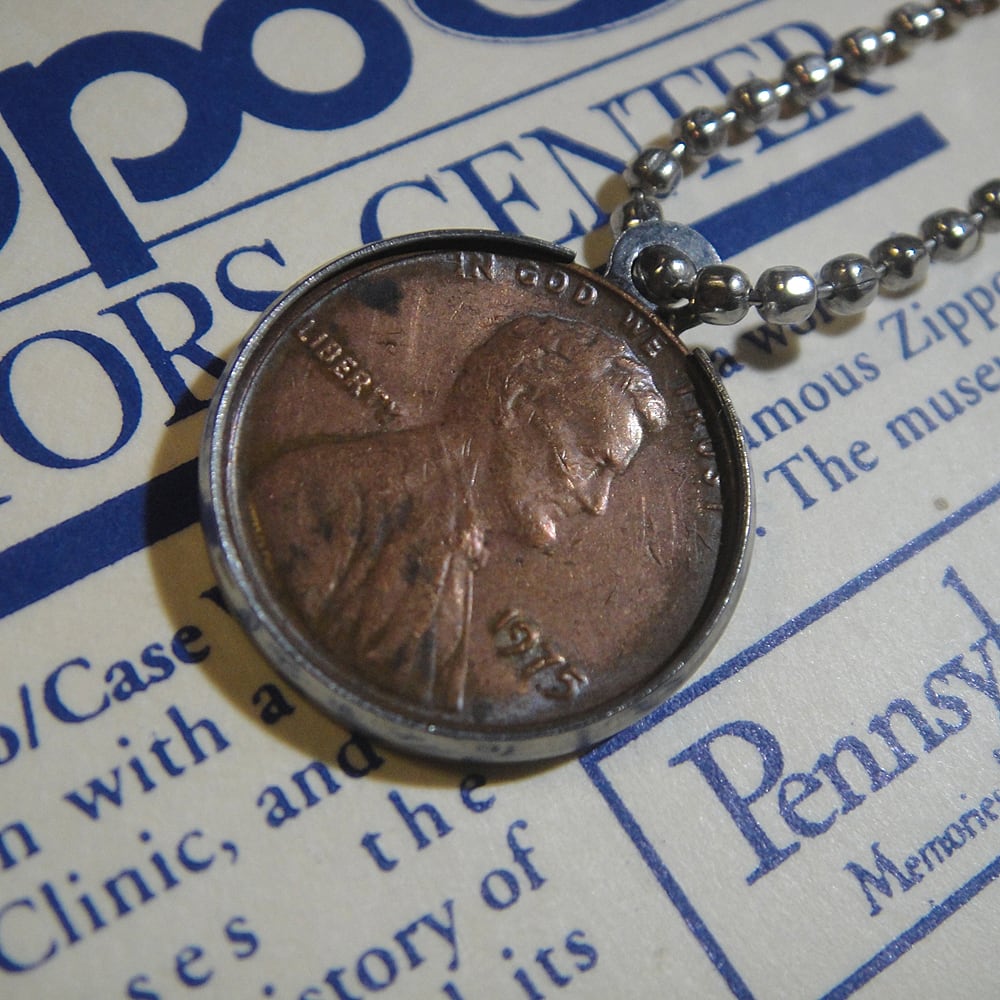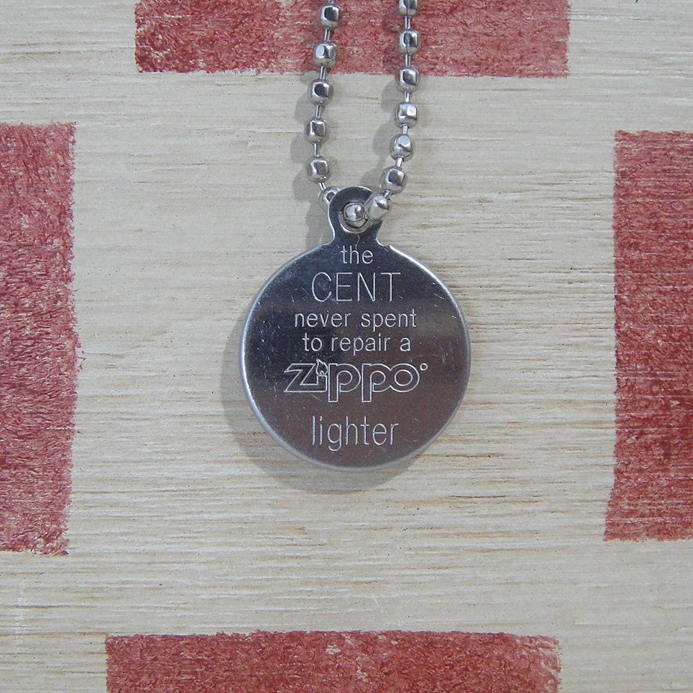 60年代頃に企画された「幸運のコイン」Zippoラッキーペニーコイン・キーリングの2002年版です。1975年の本物1¢銅貨を使用したZIPPO社は修理に1セントも頂きませんと言うノベルティグッズです。キーホルダーとタグがセットになります。コインにキズや腐食とタグに汚れがあるため、お買い得品になっております。