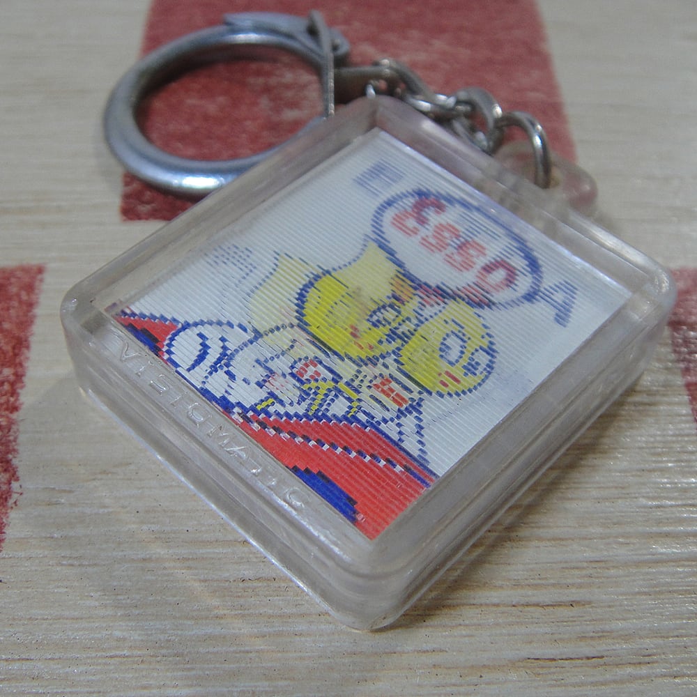 60年代頃のエッソキャラクターのオイルドロップボーイとガールのカップルでドライブするフランス向けレンチキュラータイプ(VISIOMATIC)のヴィンテージキーホルダーです。見る角度によって絵が変わる楽しい広告ノベルティです。