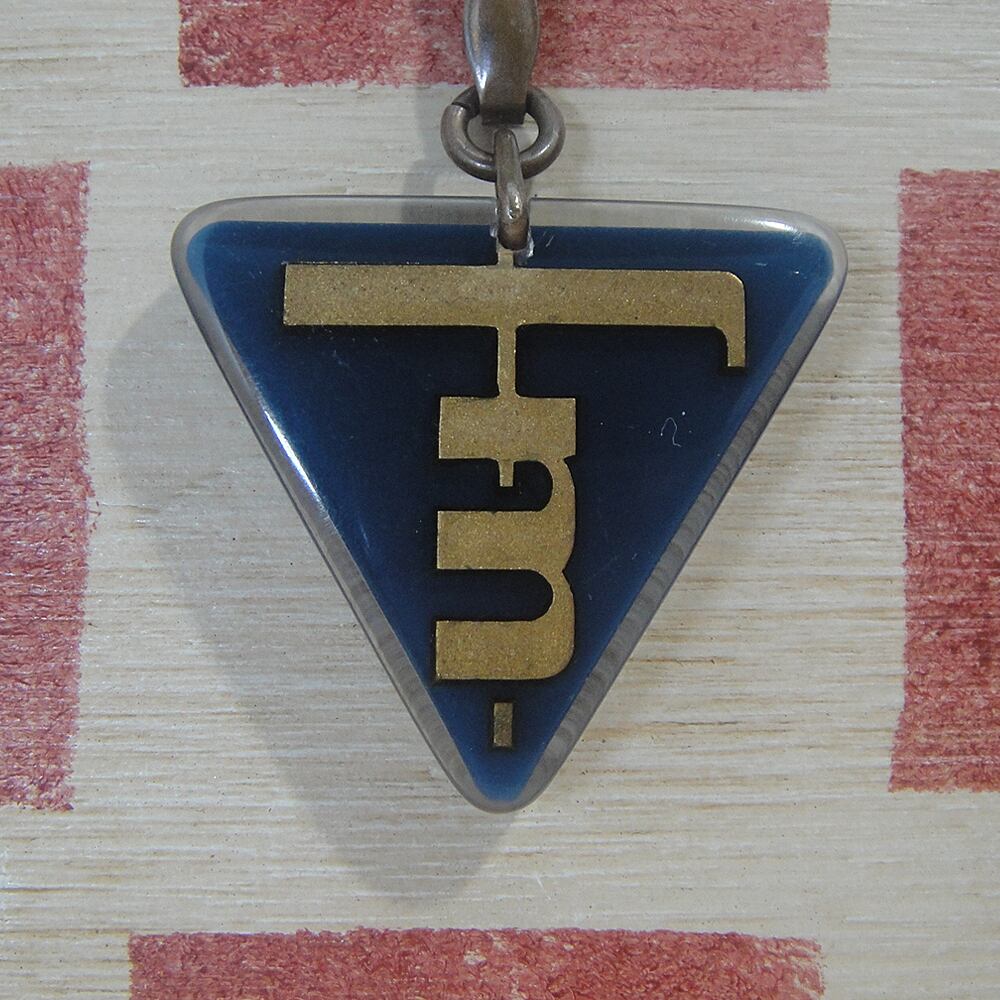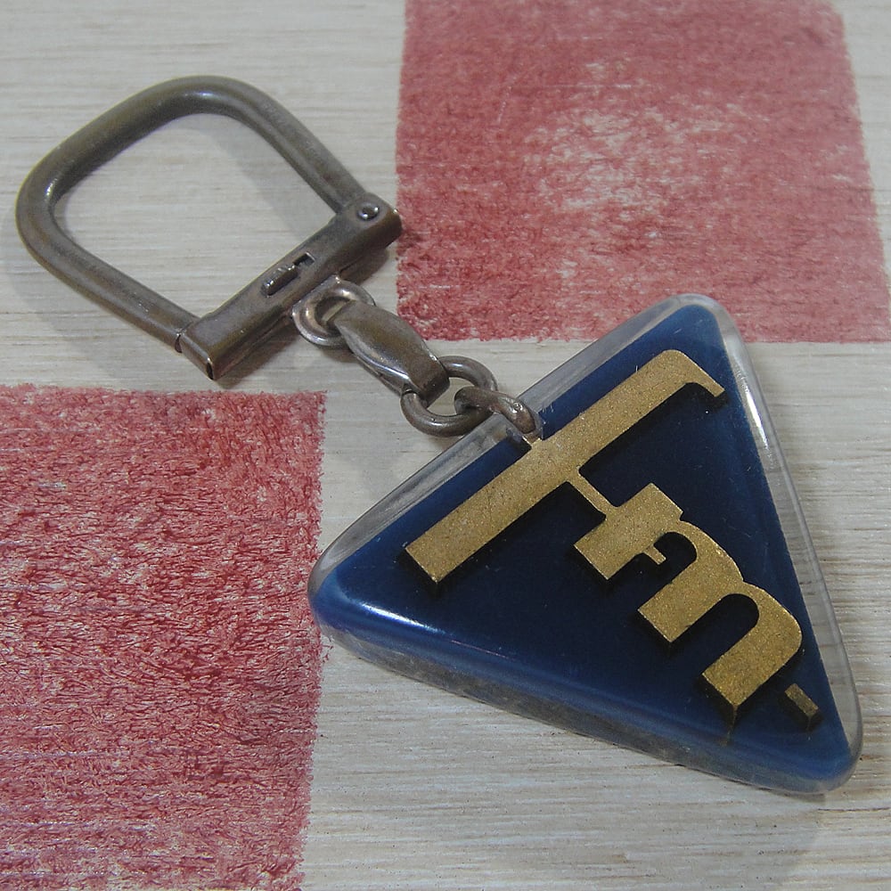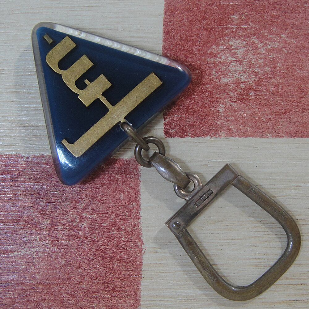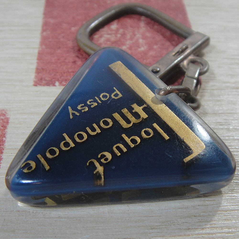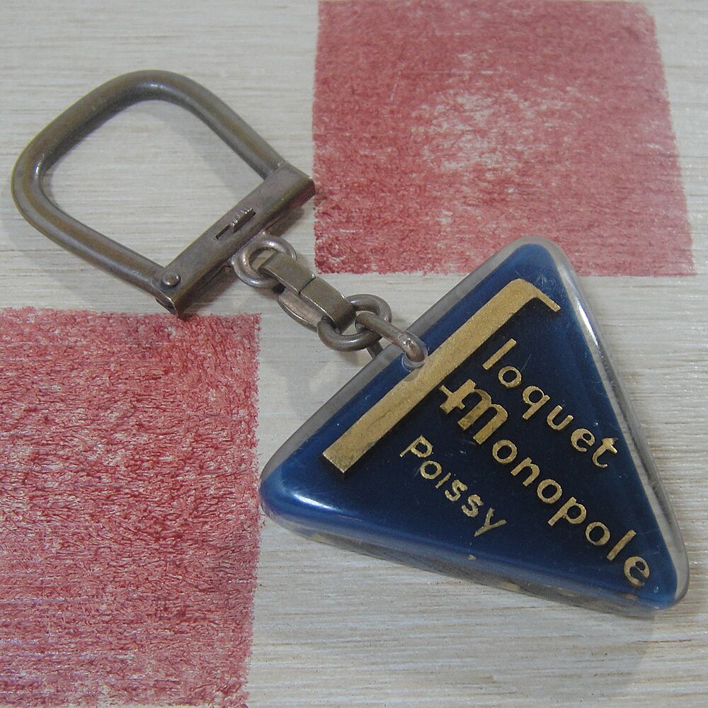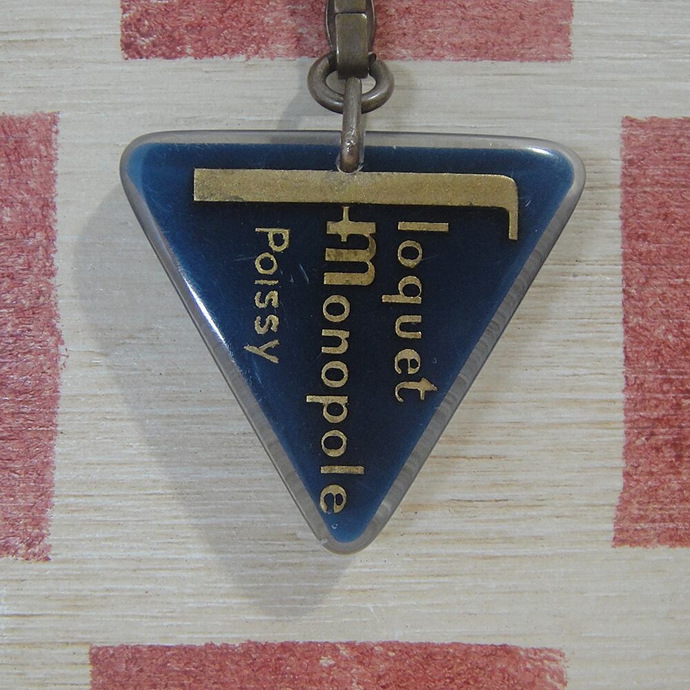 フランスの都市ポワシーにある自動車部品メーカーフロケモノポールの企業広告ノベルティで三角形状のレトロなブルボンキーホルダーです。