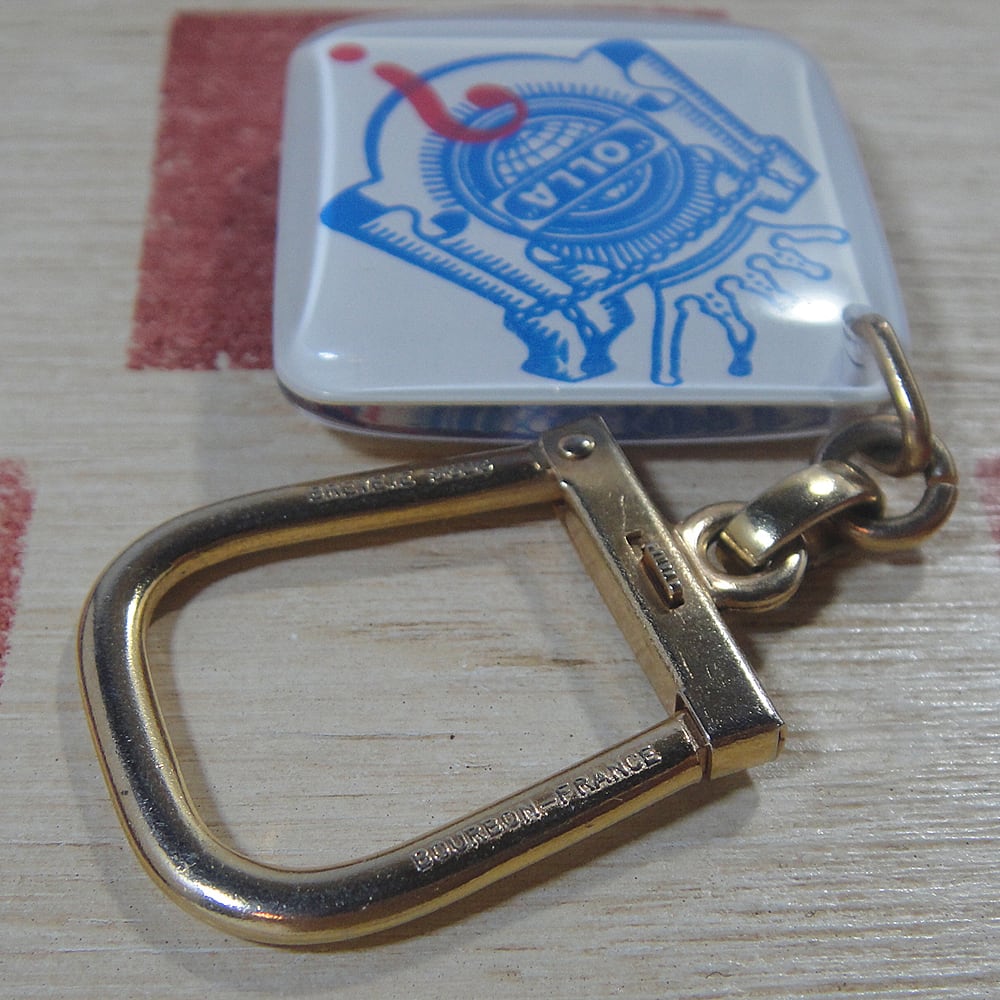 60~70年代頃のフランス警備会社オラ セキュリテの広告ノベルティでブルボンキーホルダーです。両面フラットなタイプになります。