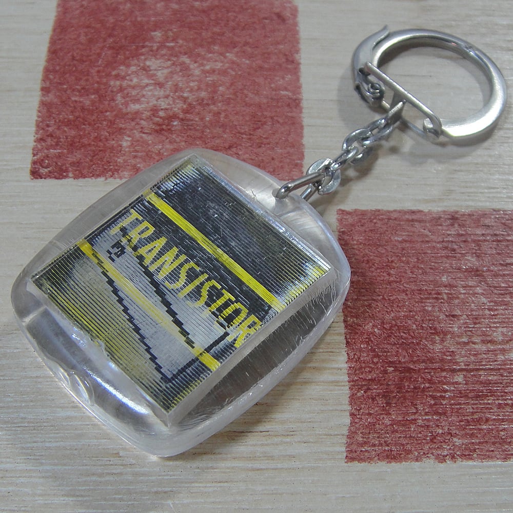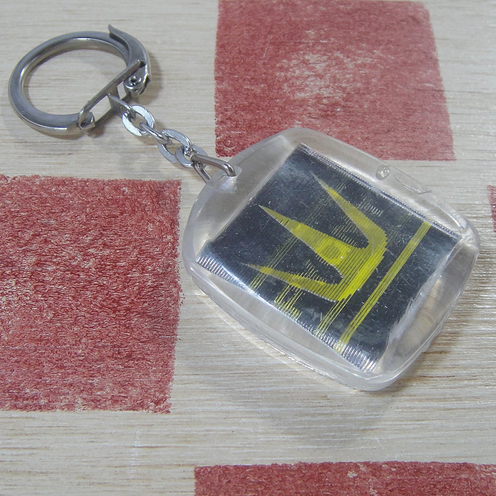 1930年代から1980年代にかけて活躍したフランスの歴史あるラジオブランドのピグミー社ロゴマーク王冠とトランジスタラジオをモチーフにしたヴィンテージキーホルダーです。見る角度によって絵が変わる楽しい広告ノベルティです。60年〜70年代頃にフランスで流行した、角度によって絵柄が変わる(レンチキュラー印刷や動画技術を使った)ヴィンテージキーホルダーです。 タグのクリア樹脂部分に数か所変形があるため、お買い得品になっています。